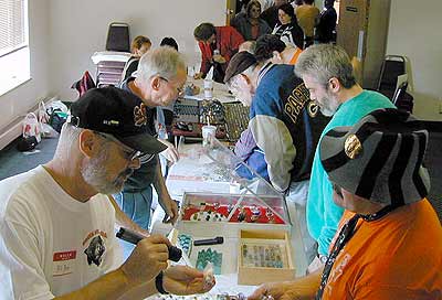 Lots of 'trick-or-treetin' took place during the last 4 or 5 days of October. Twenty-eight rooms of marbles with their owners began a four day odyssey of marble buying selling and trading. This was the second annual show. Room trading was slow, probably because the public doesn't know or understand that rooms are open and they can participate. Collectors kept themselves busy visiting each other and making some deals. A positive note is that many of our participants returned for the 'second annual' noting the social interaction between collectors was fun. They had a chance to get together and share ideas and opinions about the state of the hobby. All in all, the visits are educational and informative. Another plus for the show is that all collectors were in one block of rooms, all in easy reach of the show room.
