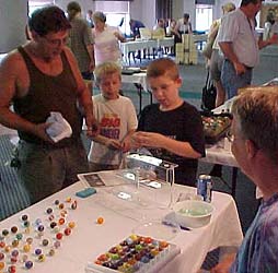 The Sunday show was about the same as each of the previous years. 100 to 125 through the door. Many small collections were brought in for appraisals and some were purchased. Always good to see lots of children, and we had a bunch. For most, one marble wasn't much different than another. Fathers and grandparents were relating some memories of their marble exploits as children. More than just a few were given to the tykes. While marbles were bought and sold, there were quite a few lookers. They just wanted to see what all the 'marble hype' is all about.